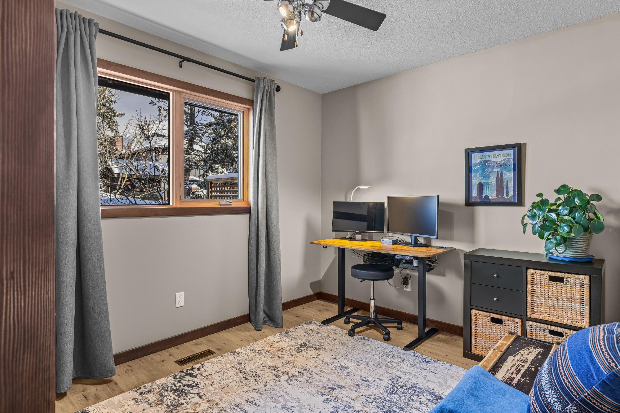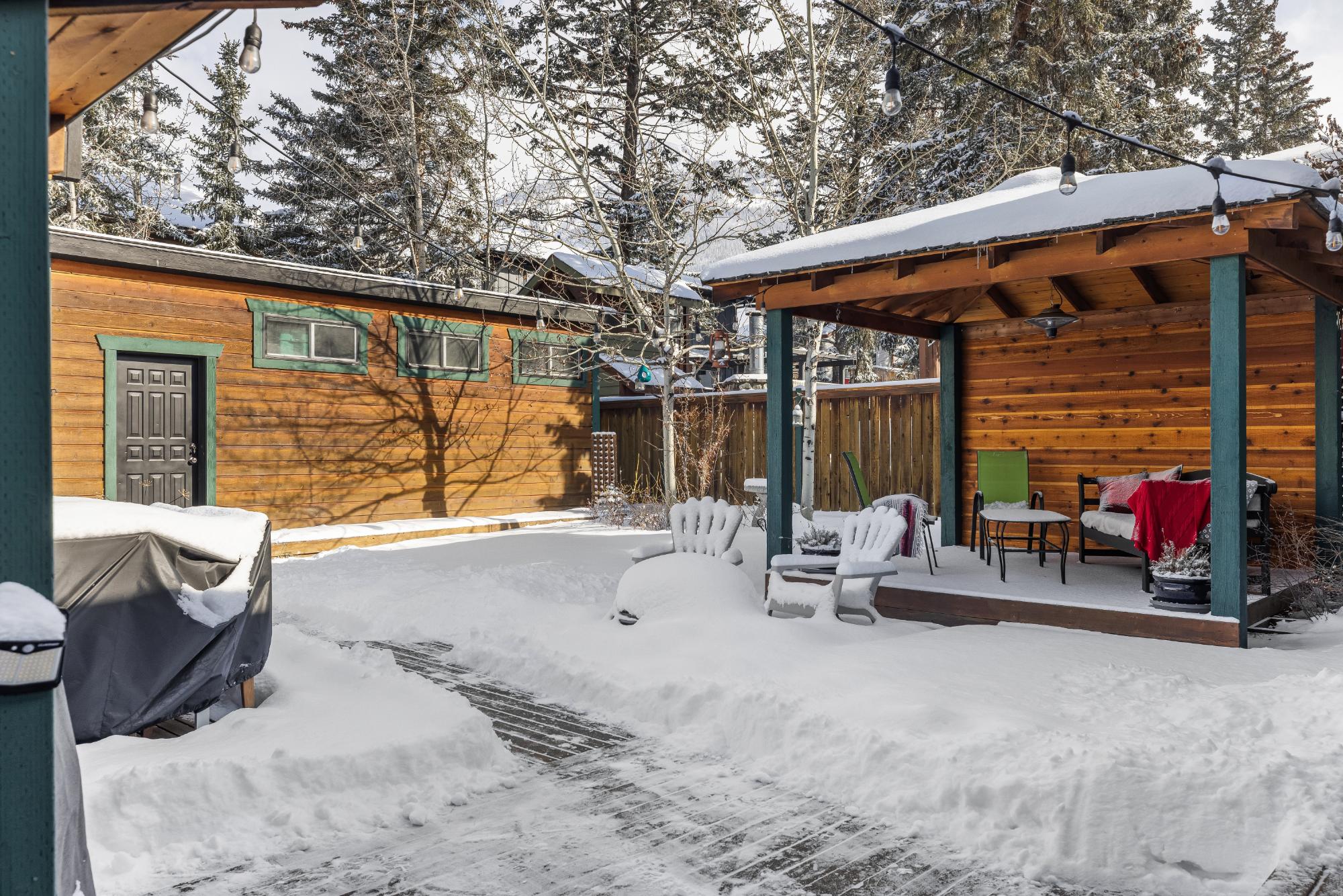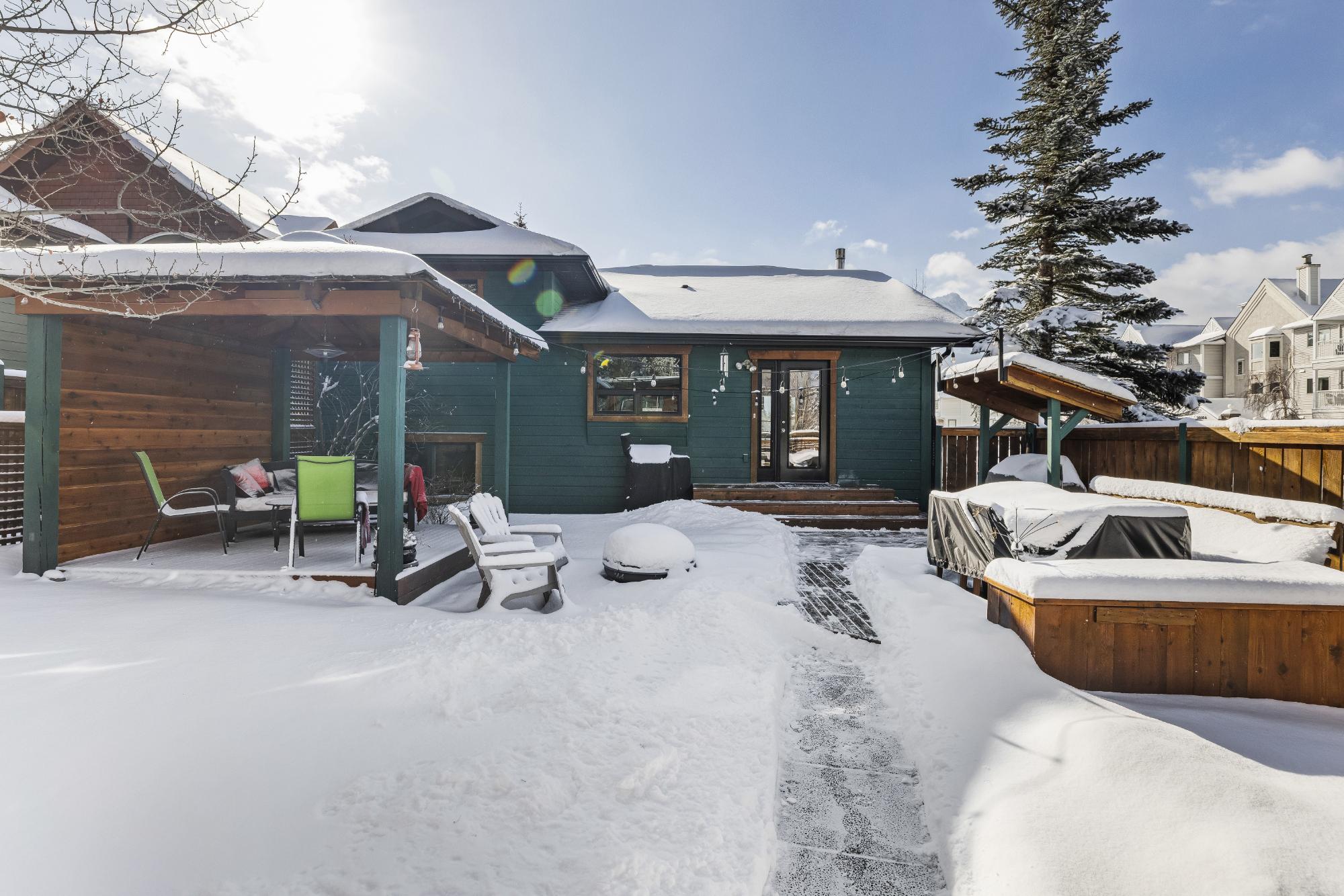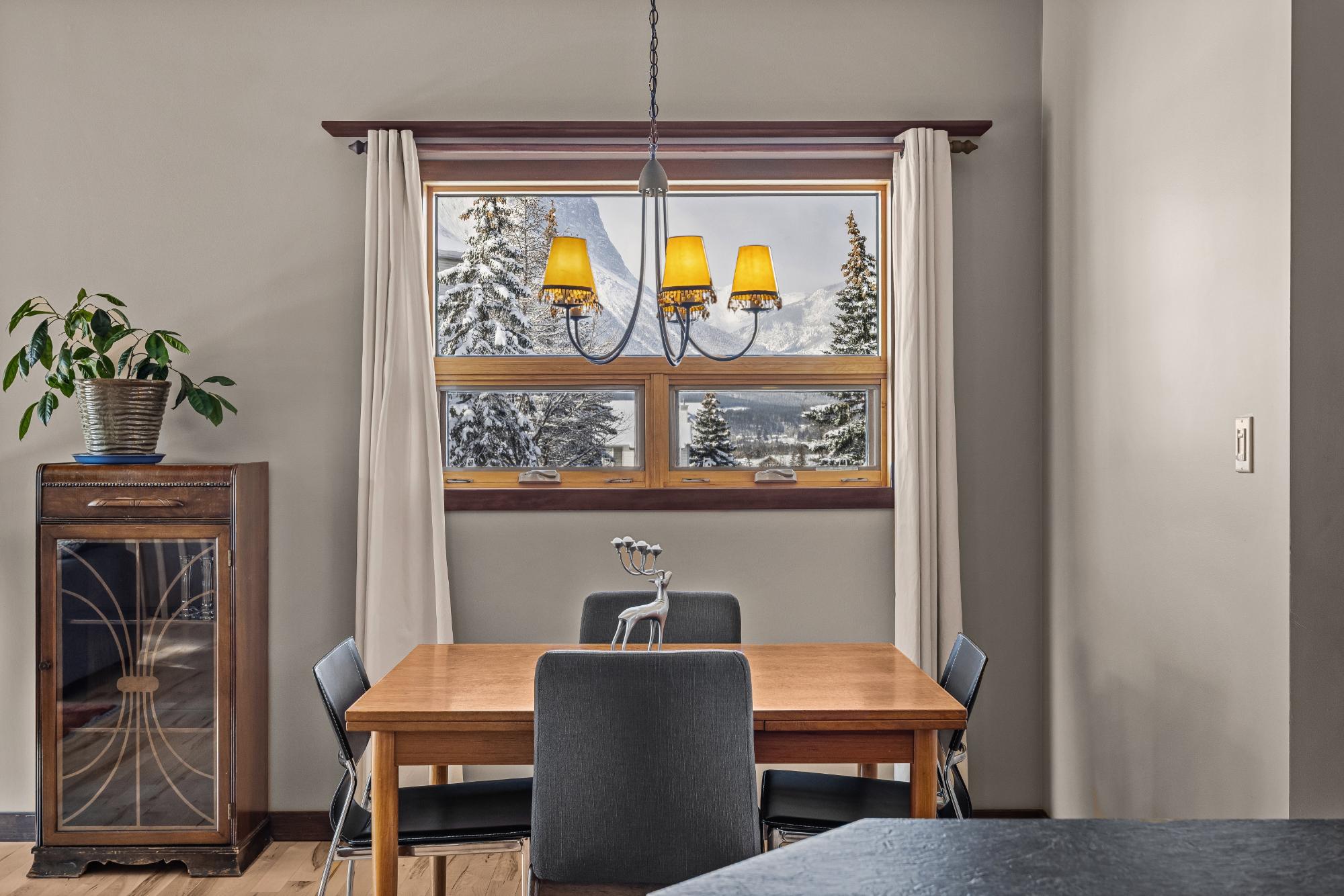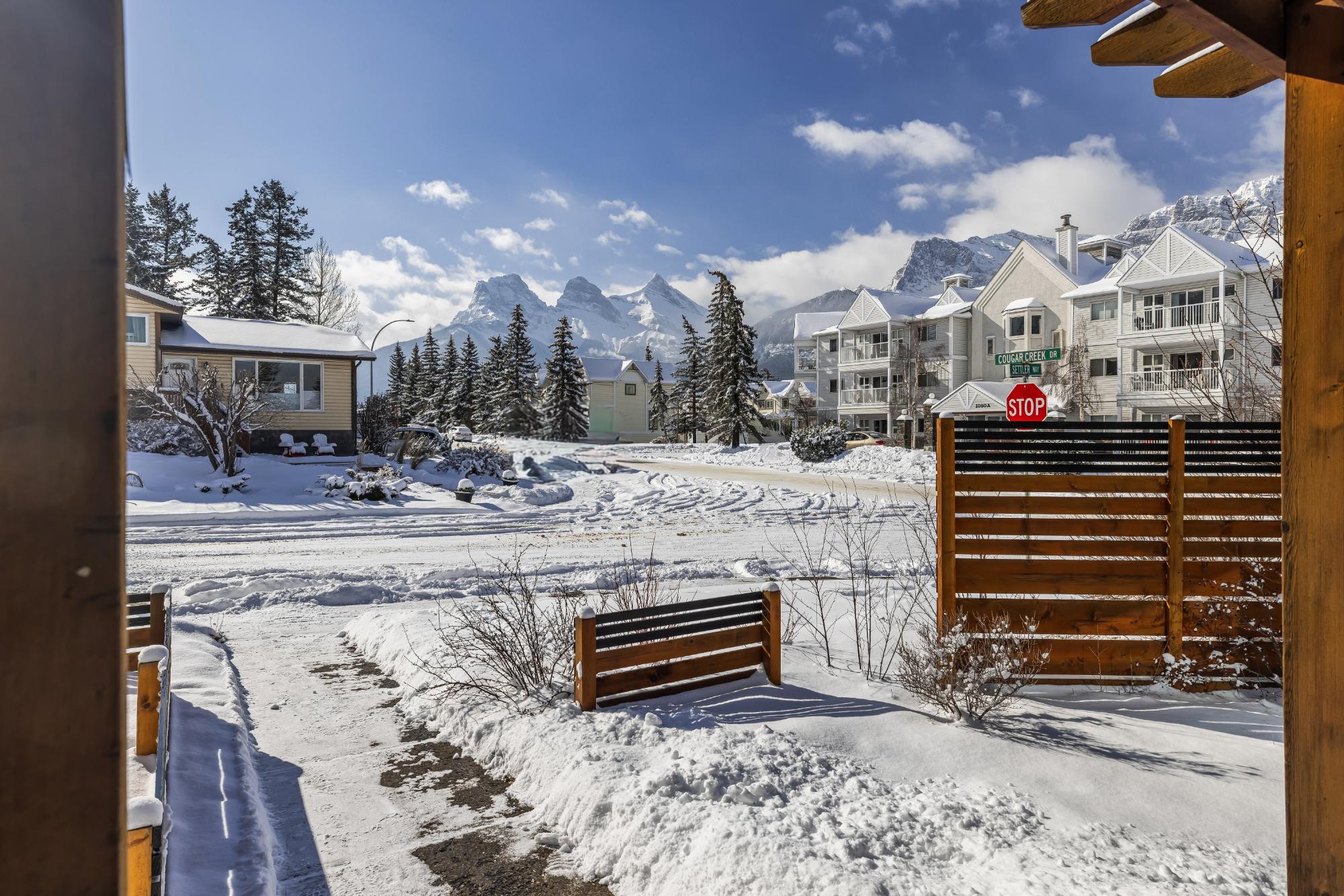Set on a desirable corner lot on the sunny side of the valley, this Cougar Creek home offers exceptional mountain views and a prime location just minutes to schools, trails, parks, and shops. The open-concept main level is bright and welcoming, featuring hardwood flooring, a slate entry, and a cozy gas fireplace. The split-level layout offers great flexibility. Just above the main living area are two bedrooms and a full bathroom. Down one level, you’ll find a third bedroom, laundry, and a 3-piece bathroom. The lower level features a spacious family room with a second gas fireplace and a versatile flex space ideal as a fourth bedroom, office, or guest area. The backyard is a standout, complete with a gazebo and firepit area perfect for relaxing or entertaining. A large shed provides excellent storage for bikes and gear, while the side parking pad accommodates up to three vehicles. A fantastic family home in one of Canmore’s most desirable neighbourhoods.