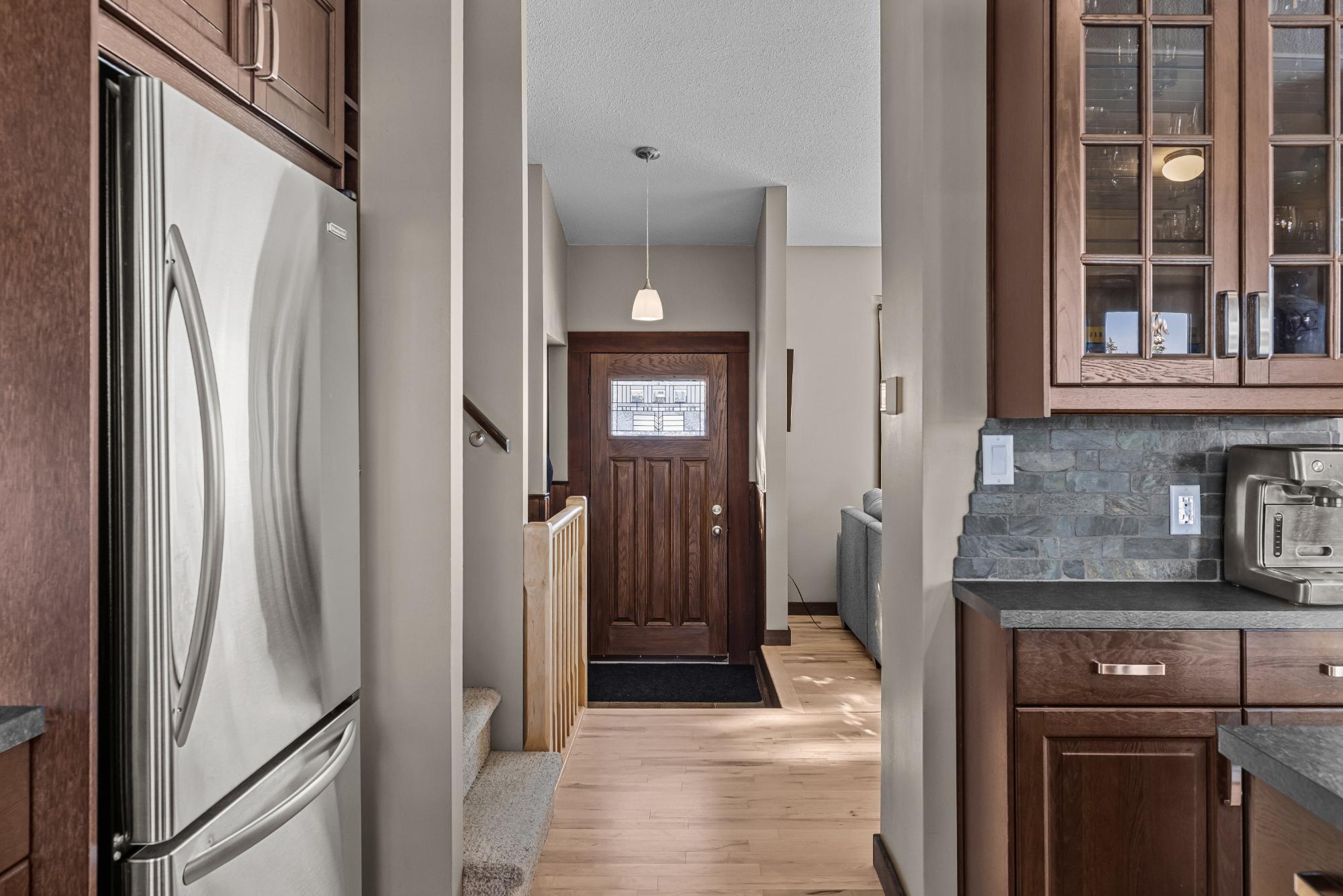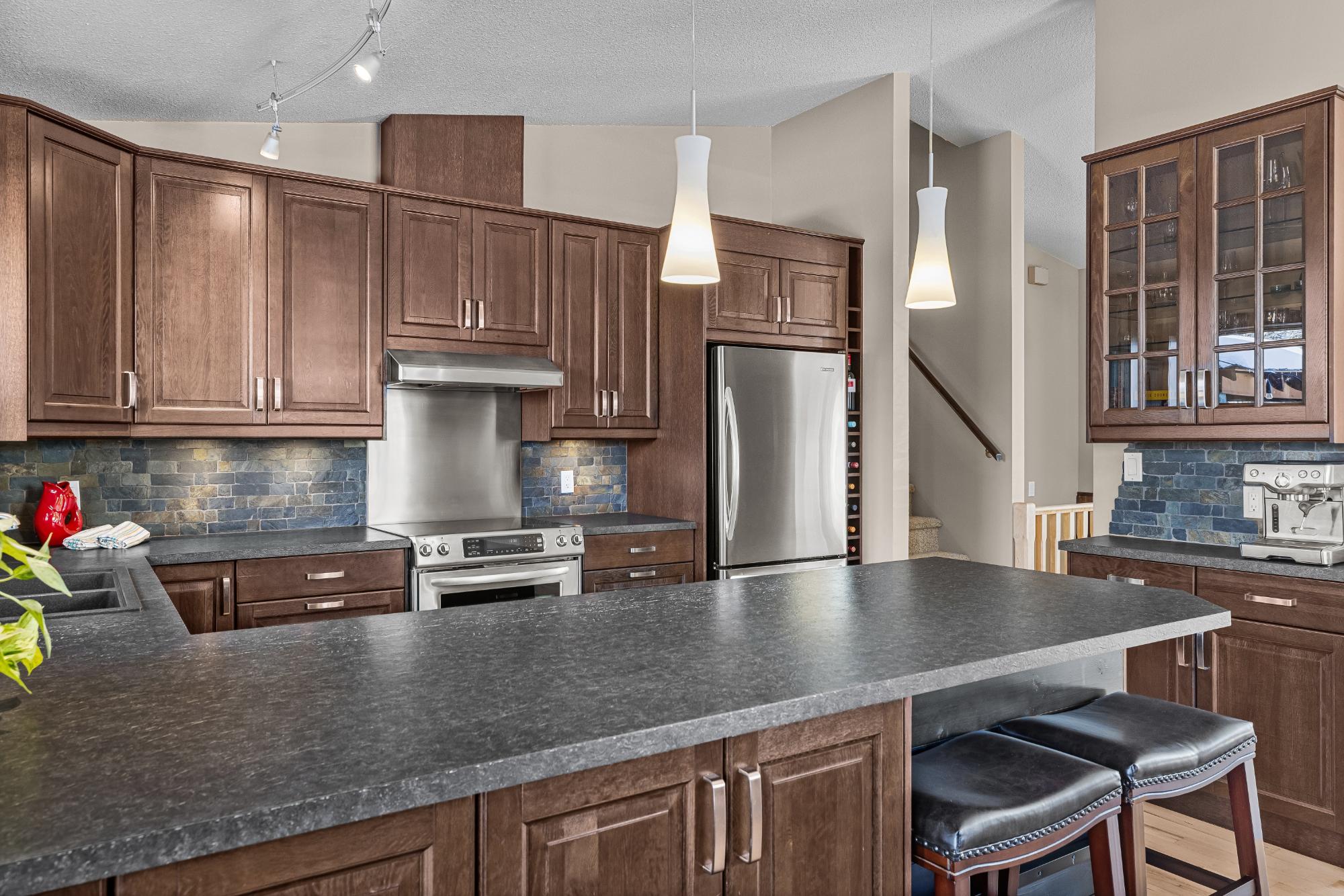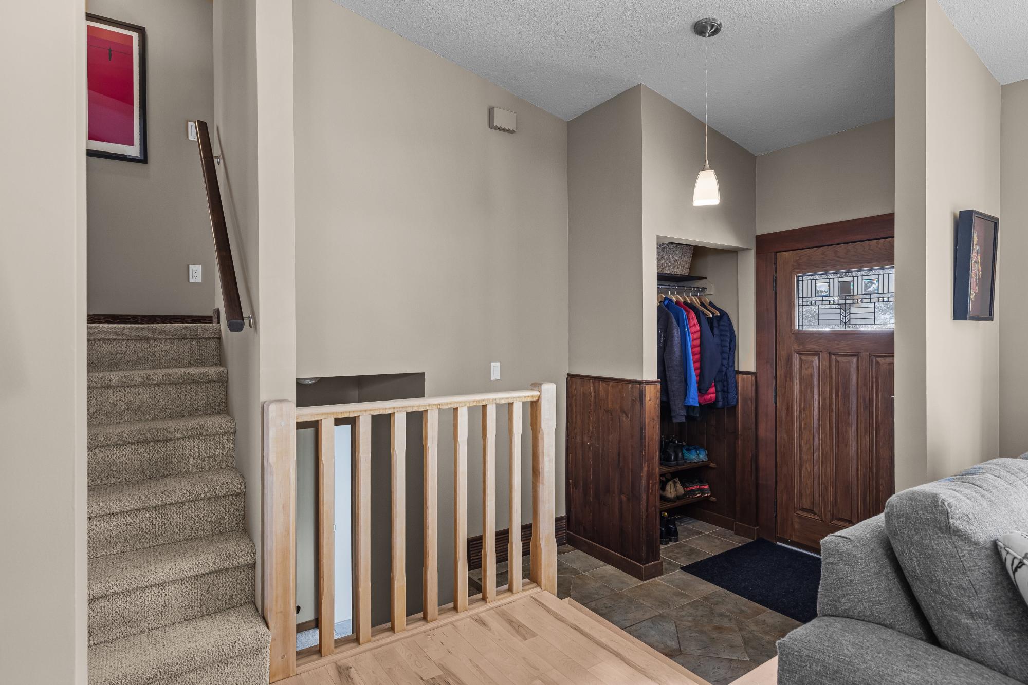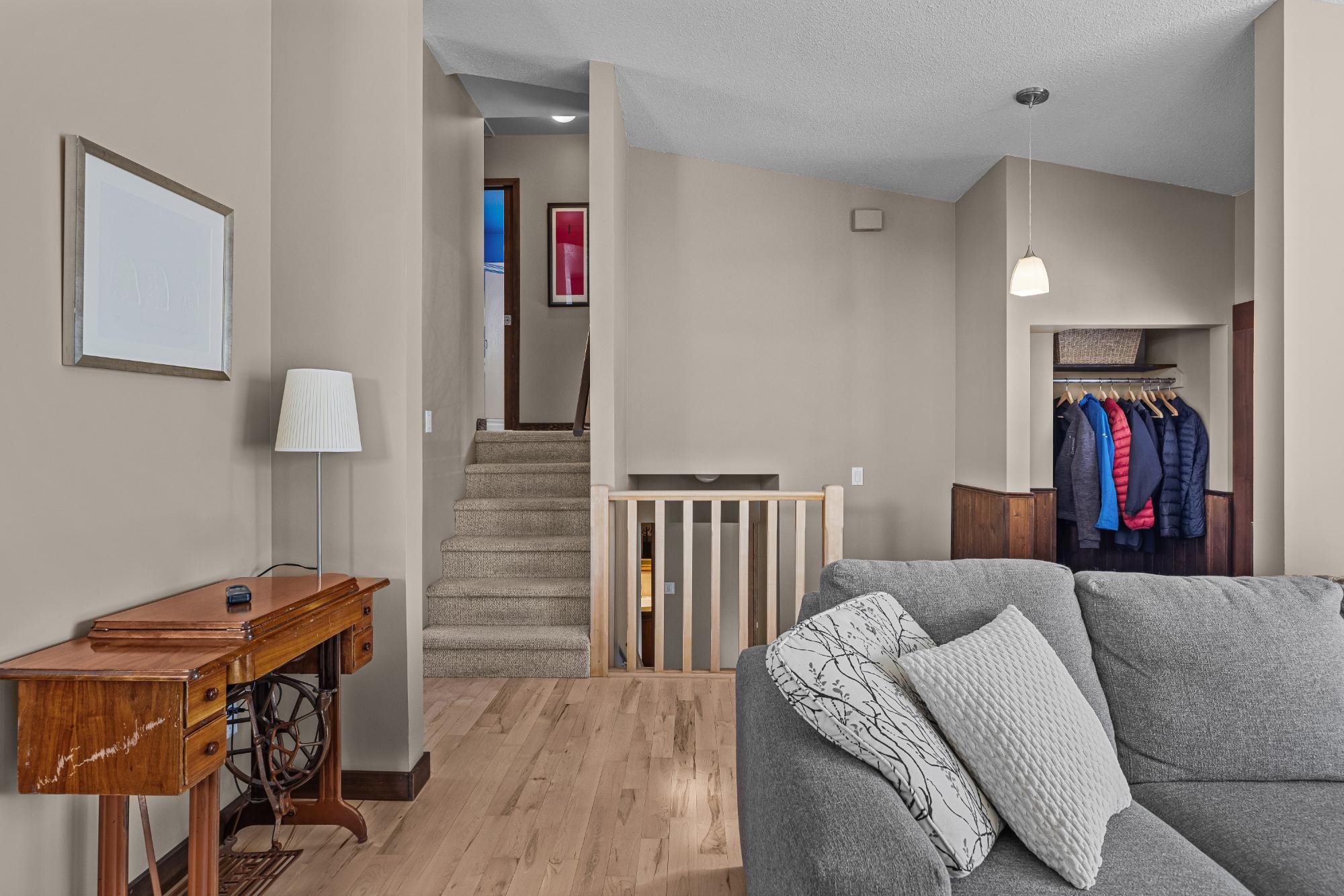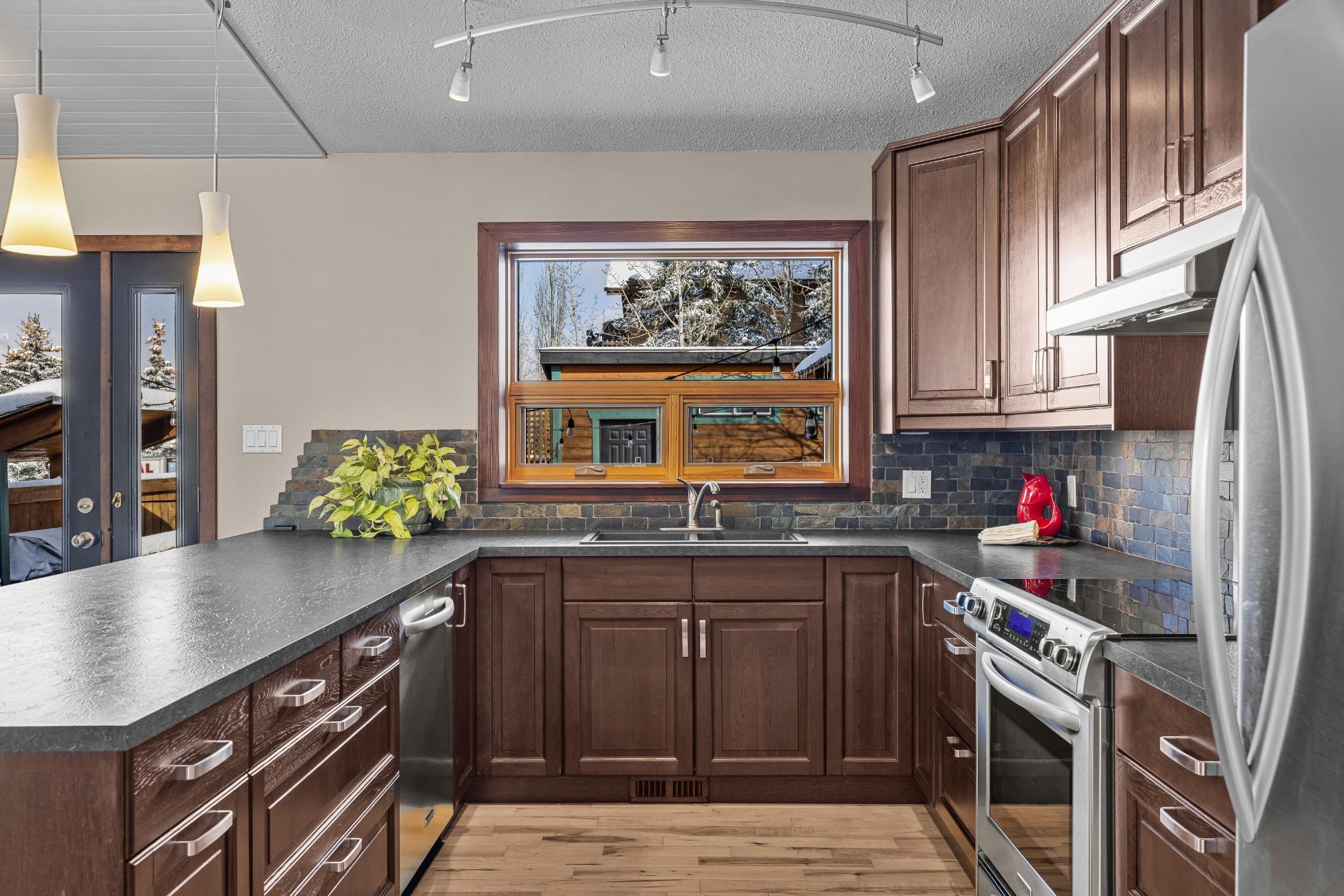 Set on a desirable corner lot on the sunny side of the valley, this Cougar Creek home offers exceptional mountain views and a prime location just minutes to schools, trails, parks, and shops. The open-concept main level is bright and welcoming, featuring hardwood flooring, a slate entry, and a cozy gas fireplace. The split-level layout offers great flexibility. Just above the main living area are two bedrooms and a full bathroom. Down one level, you’ll find a third bedroom, laundry, and a 3-piece bathroom. The lower level features a spacious family room with a second gas fireplace and a versatile flex space ideal as a fourth bedroom, office, or guest area. The backyard is a standout, complete with a gazebo and firepit area perfect for relaxing or entertaining. A large shed provides excellent storage for bikes and gear, while the side parking pad accommodates up to three vehicles. A fantastic family home in one of Canmore’s most desirable neighbourhoods.