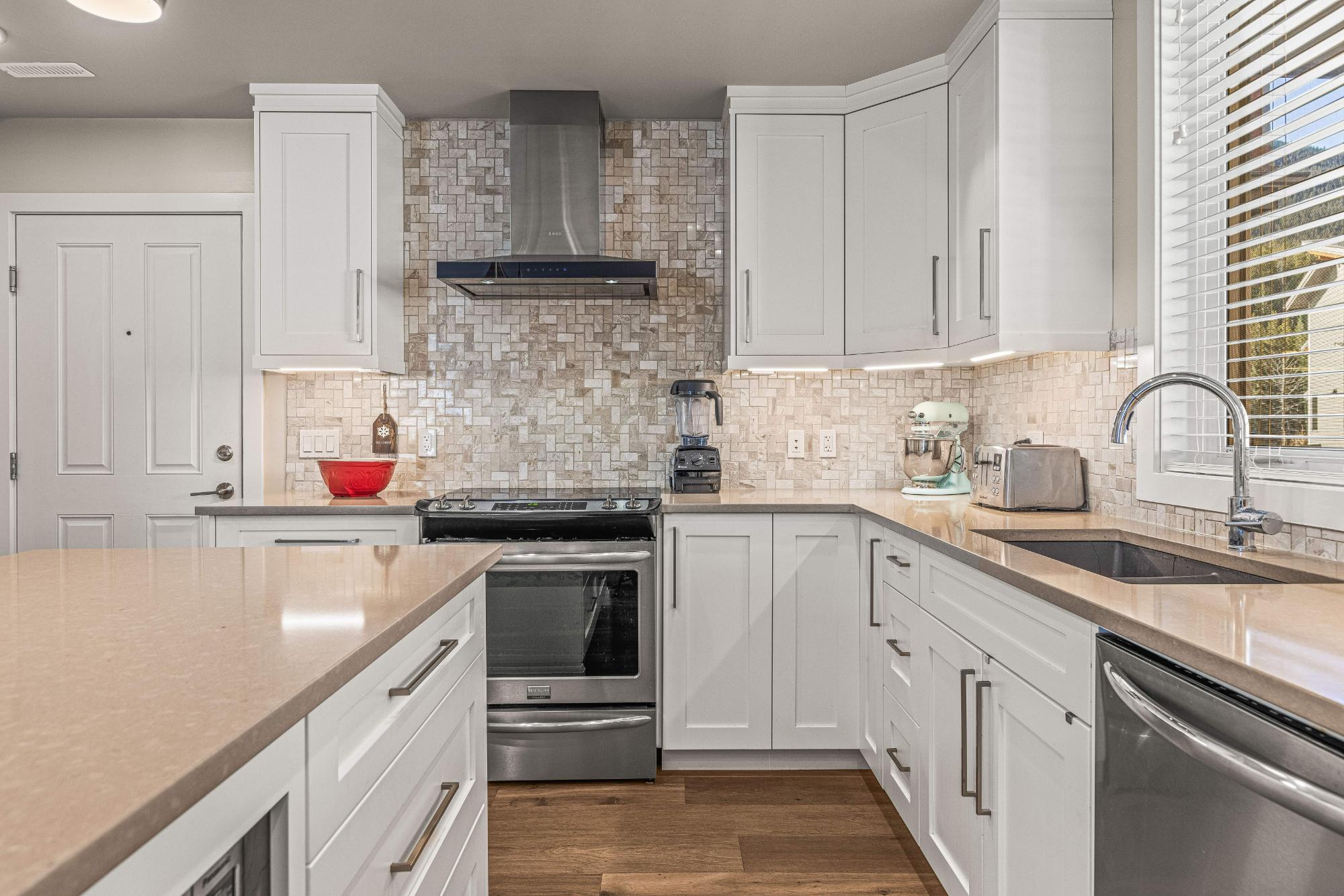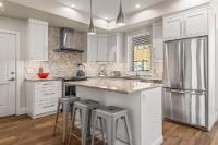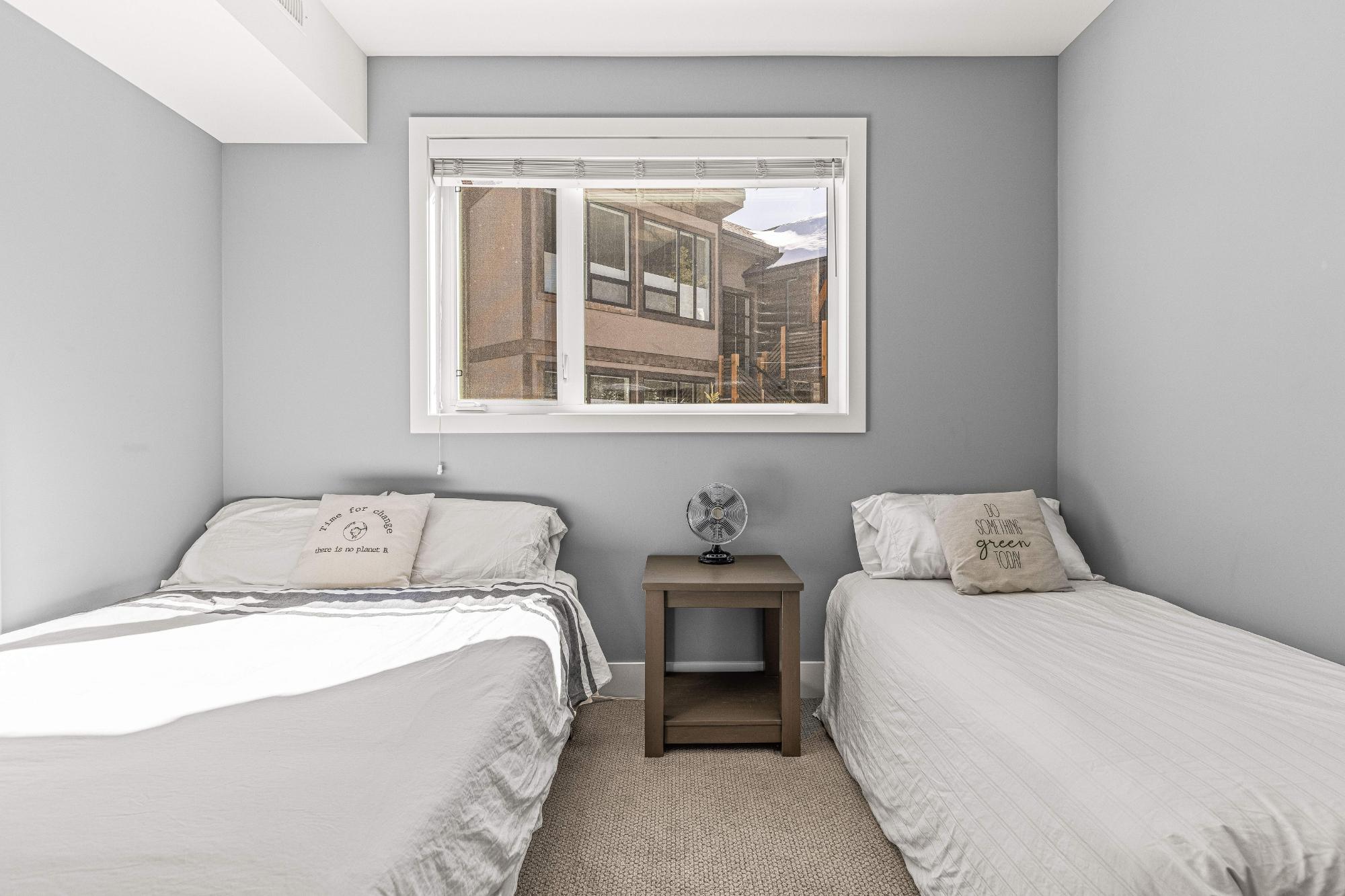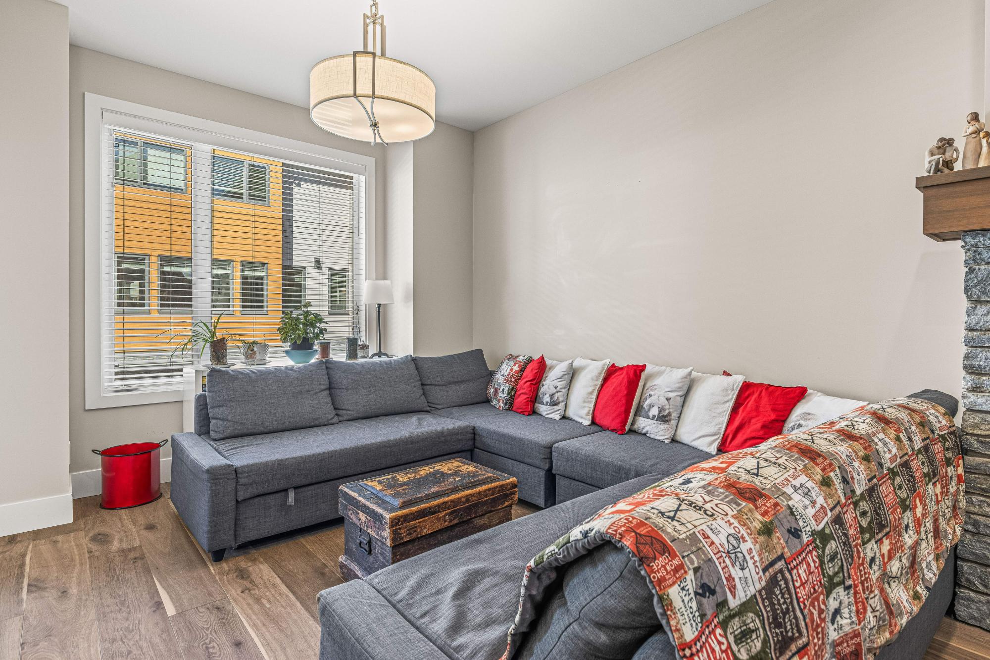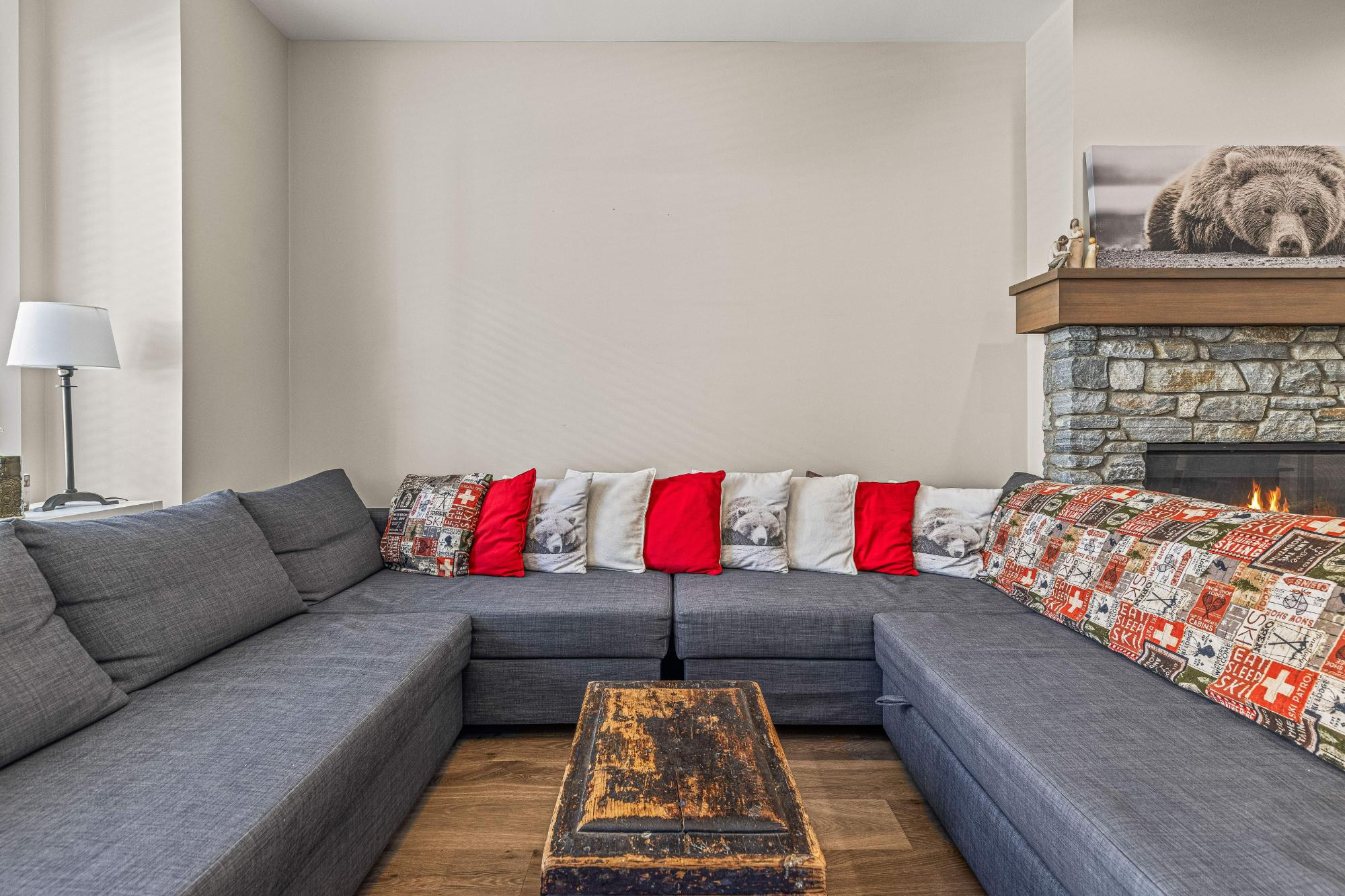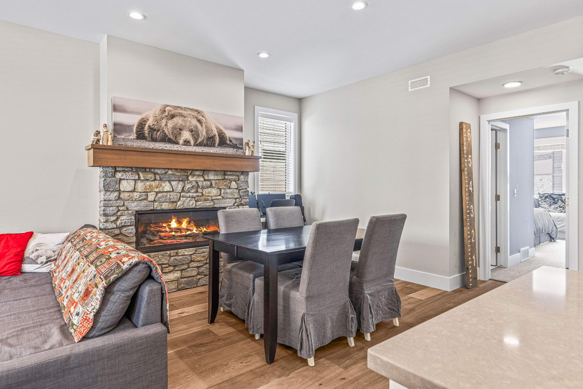 Located in the highly desirable Three Sisters Mountain Village, this meticulously maintained single-level end unit presents an open-concept floor plan with modern finishes. The kitchen boasts sleek quartz countertops, stainless steel appliances, and luxury vinyl plank flooring, seamlessly extending to the spacious deck. The unit features two large bedrooms and two bathrooms, with lovely mountain views. Residents enjoy easy access to nearby hiking and biking trails, playgrounds, the renowned Stewart Creek Golf Course, and in close proximity to “The Gateway” commercial space, which promises an IGA along with additional amenities. The property includes a single attached garage and a separate heated gear and storage area, ideal for full-time living or a weekend retreat—all complemented by low condo fees!