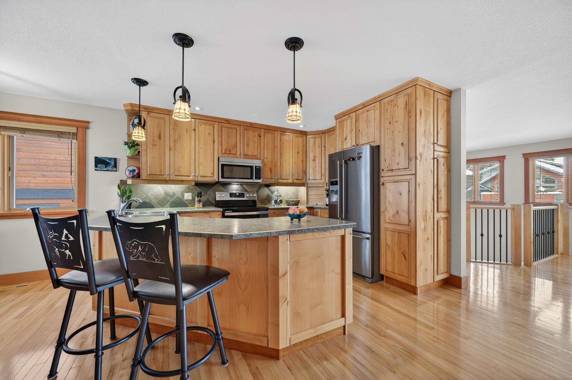 Experience the pinnacle of mountain living on Wilson Way, a premier address tucked into the prestigious Peaks of Grassi. Perched directly at the base of Mount Lawrence Grassi and Ha Ling Peak, this location offers a true "mountain-hideaway" feel with the elevation to match. The lifestyle here is defined by unparalleled door-to-trail access; within seconds, you can be exploring the Highline and Powerline networks or heading to Quarry Lake and the Canmore Nordic Centre. Whether you’re looking for rugged adventure or a peaceful retreat, this home perfectly balances high-altitude serenity with a quick, easy connection to the heart of Canmore. Welcome to 997 Wilson Way, a meticulously maintained, original-owner residence that blends mechanical integrity with an unbeatable mountain lifestyle. This isn't just a house; it’s a fully cared-for sanctuary designed to maximize its high-altitude setting. Practically meets Luxury, A standout feature of this property is the fully legal suite.