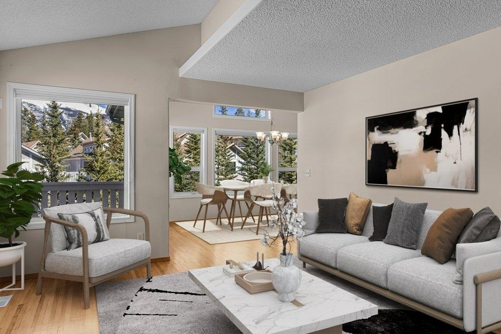 Set in one of Canmore’s most sought-after neighborhoods, this inviting bareland condo offers the perfect balance of full-time comfort and weekend escape. Just a 6-minute drive to downtown—or an easy, scenic stroll along the Bow River—you’re ideally positioned to enjoy the best of the Rockies. With 1,867 sq ft across three levels, this 3-bedroom, 3.5-bath home provides generous space to relax, host, and unwind. The bright open-concept living and dining area features warm wood floors, a cozy gas fireplace, and peaceful valley views over green space. Lovingly maintained, this home is ready for your personal touch to truly make it shine. A patio and two private balconies invite you outdoors, while the single garage offers room for all your mountain gear. Downstairs, a sun-filled family room adds even more flexible living space—perfect for guests or quiet evenings in. The homesteads are a lovely and very safe and friendly neighborhood, and the property is easy to show. Don’t wait!