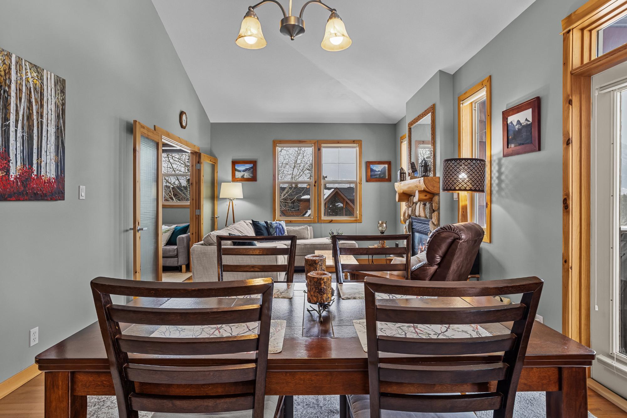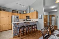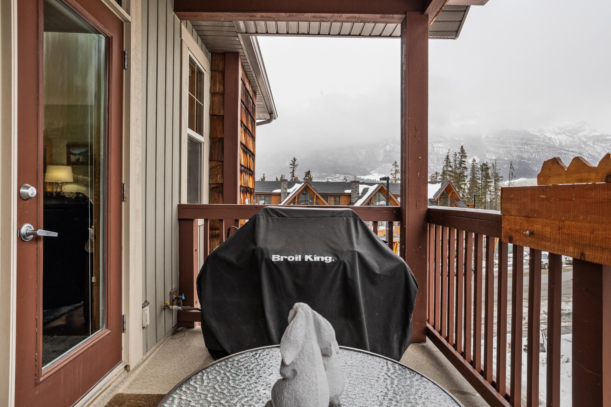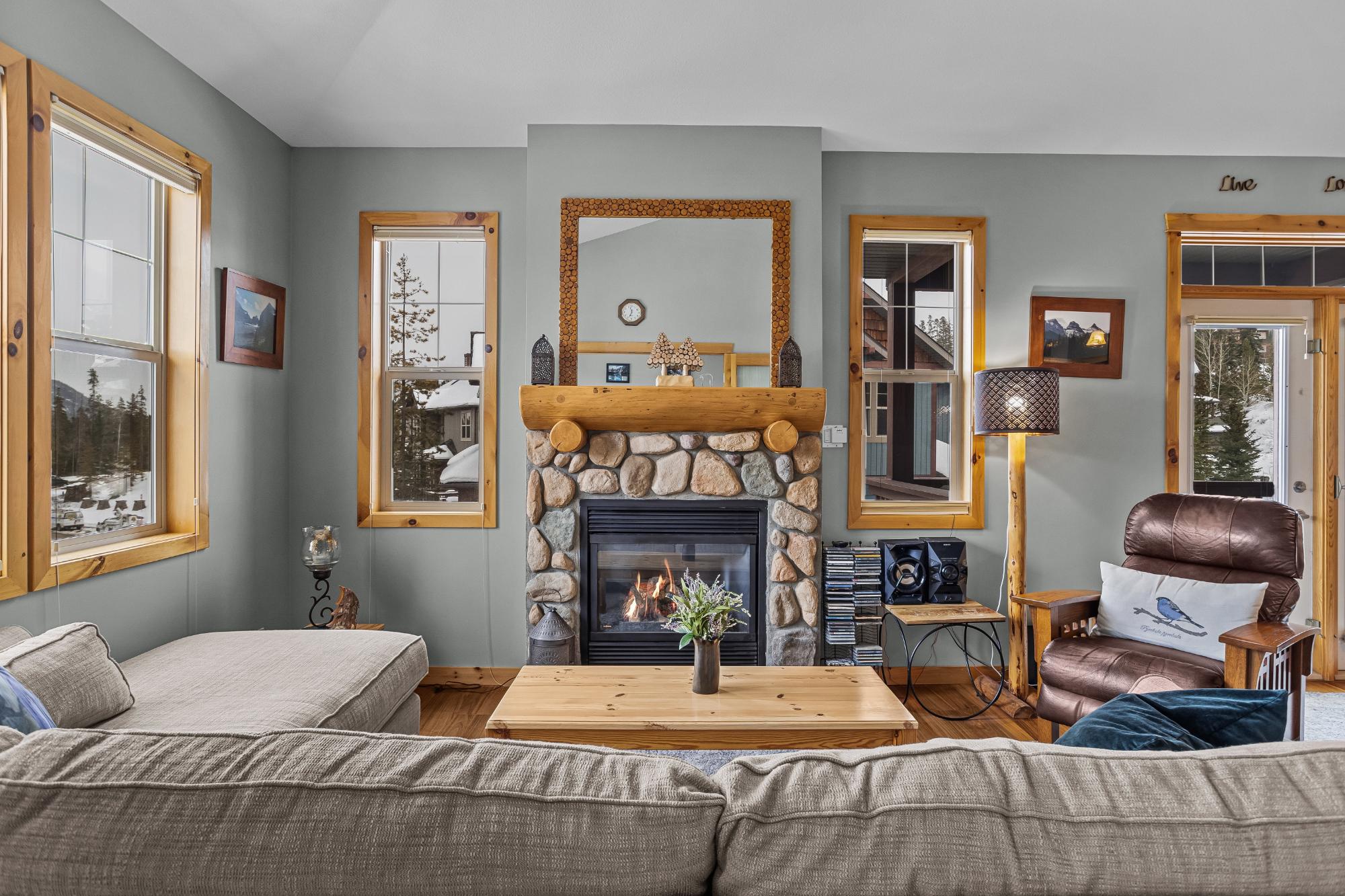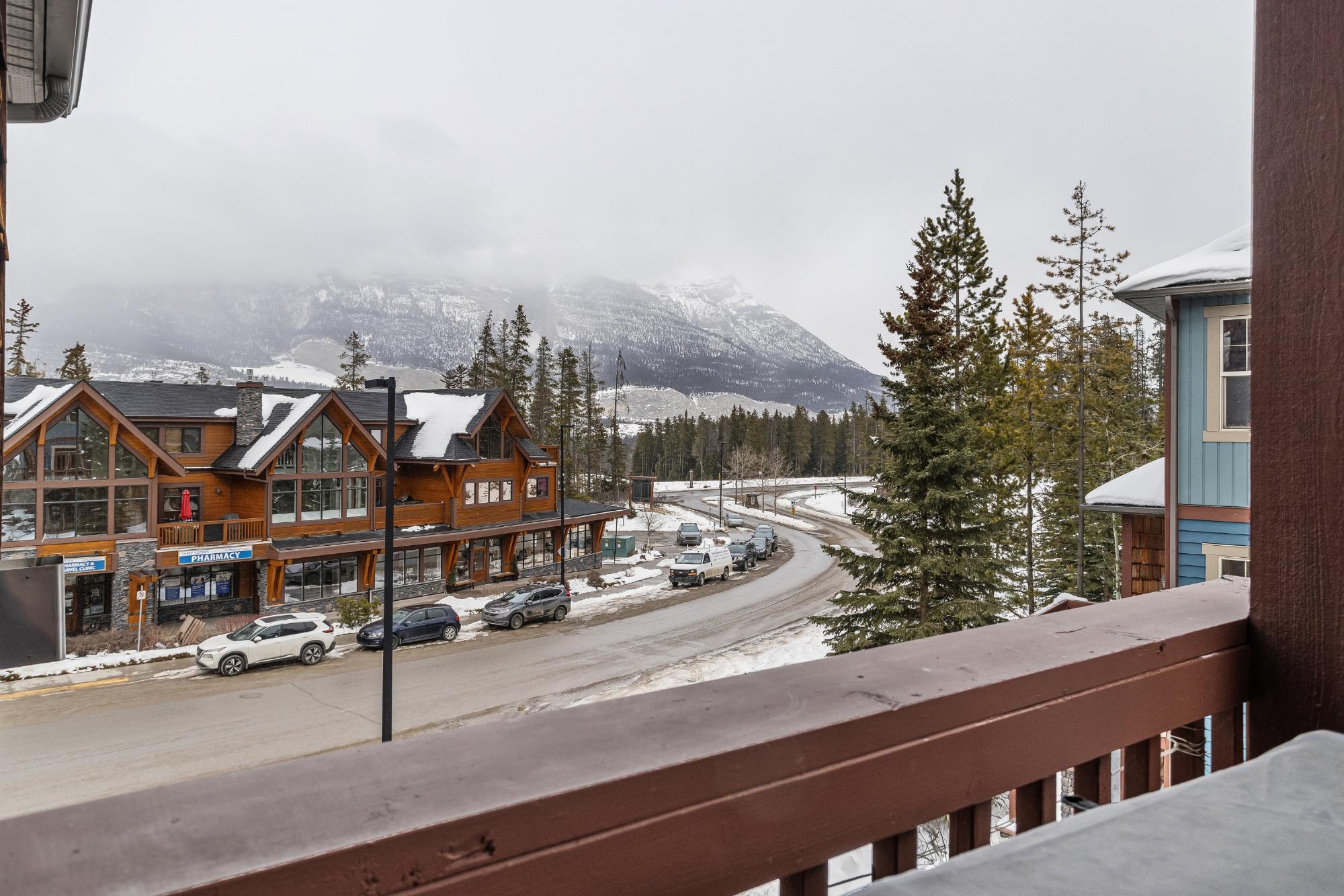 Step into this thoughtfully designed townhome featuring a bright, vaulted main living area with warm wood accents and hardwood floors. The sleek kitchen is both functional and stylish, with quartz countertops, an eating bar, and an open flow into the living space, highlighted by river stone accents and a cozy gas fireplace. Large windows bring in plenty of natural light and capture beautiful mountain views, while the covered upper balcony offers a perfect spot to relax and enjoy the scenery year-round. This home includes 3 bedrooms and 2 bathrooms, with a primary suite featuring its own ensuite and walk-in-closet. A single-car garage and additional storage provide everyday convenience. Located in a well-maintained complex with easy access to shopping and nearby trails, perfect for those who love an active lifestyle without sacrificing comfort or style.
