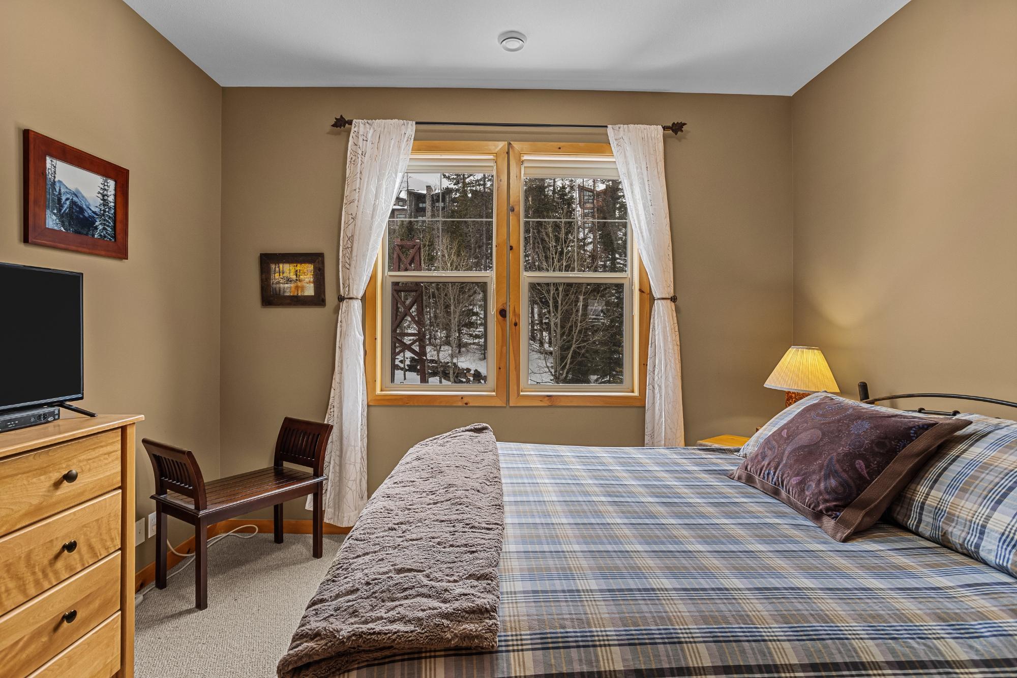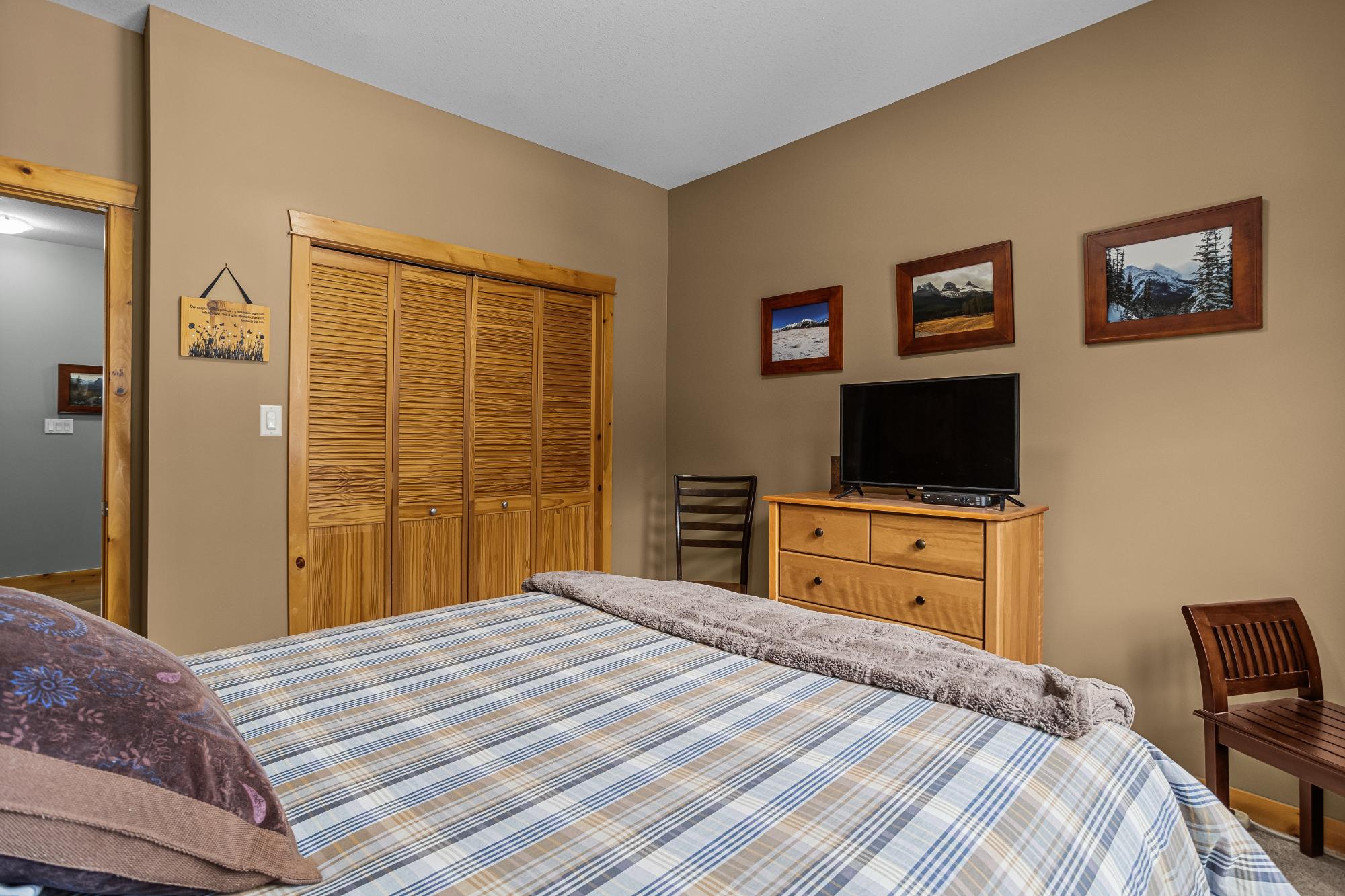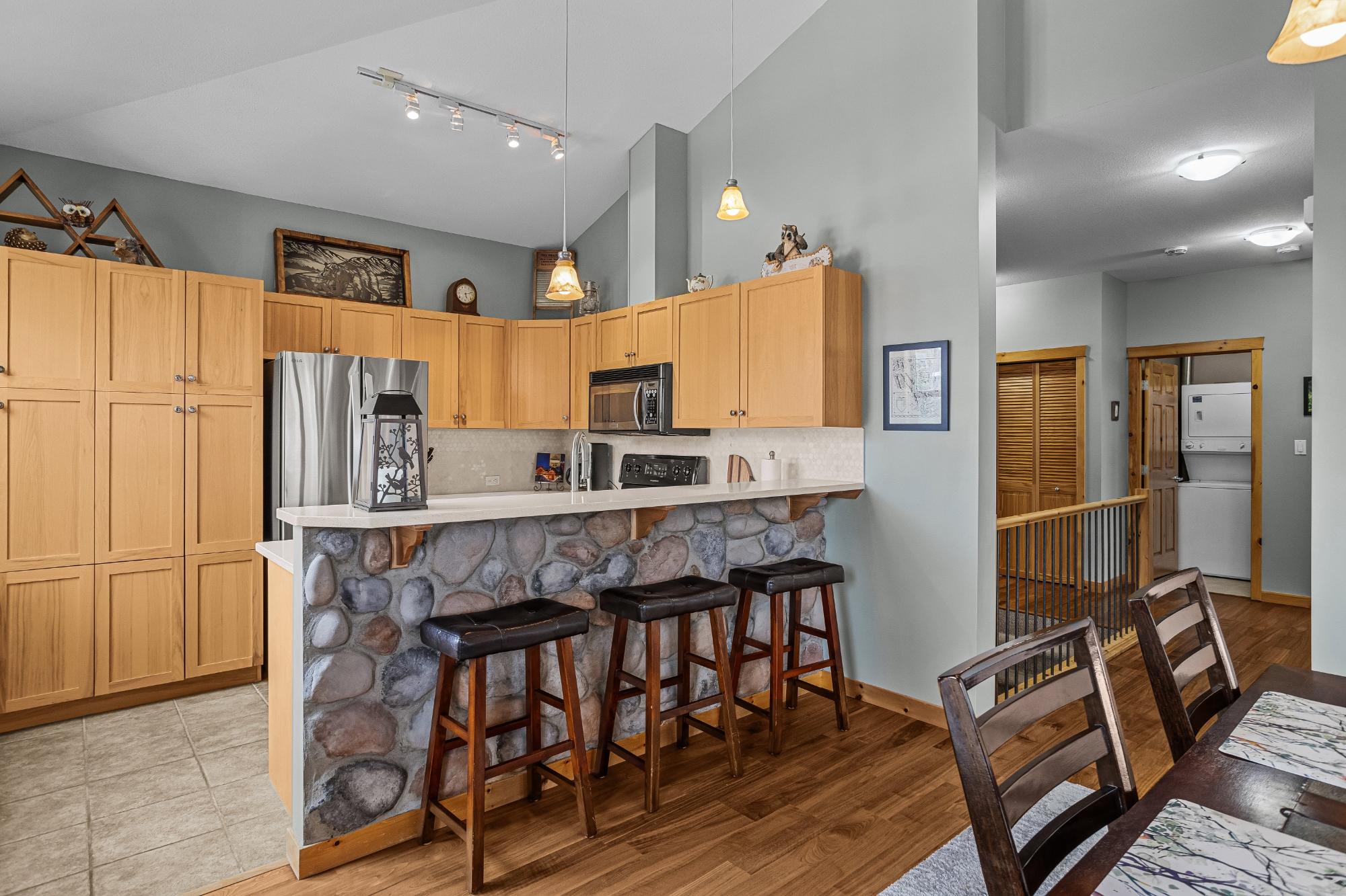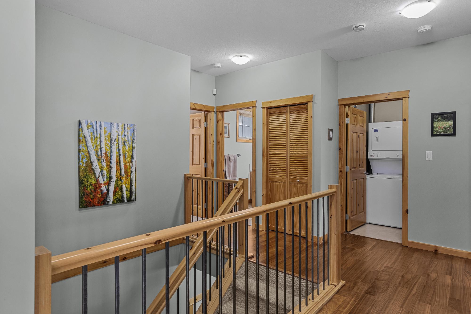 Step into this thoughtfully designed townhome featuring a bright, vaulted main living area with warm wood accents and hardwood floors. The sleek kitchen is both functional and stylish, with quartz countertops, an eating bar, and an open flow into the living space, highlighted by river stone accents and a cozy gas fireplace. Large windows bring in plenty of natural light and capture beautiful mountain views, while the covered upper balcony offers a perfect spot to relax and enjoy the scenery year-round. This home includes 3 bedrooms and 2 bathrooms, with a primary suite featuring its own ensuite and walk-in-closet. A single-car garage and additional storage provide everyday convenience. Located in a well-maintained complex with easy access to shopping and nearby trails, perfect for those who love an active lifestyle without sacrificing comfort or style.