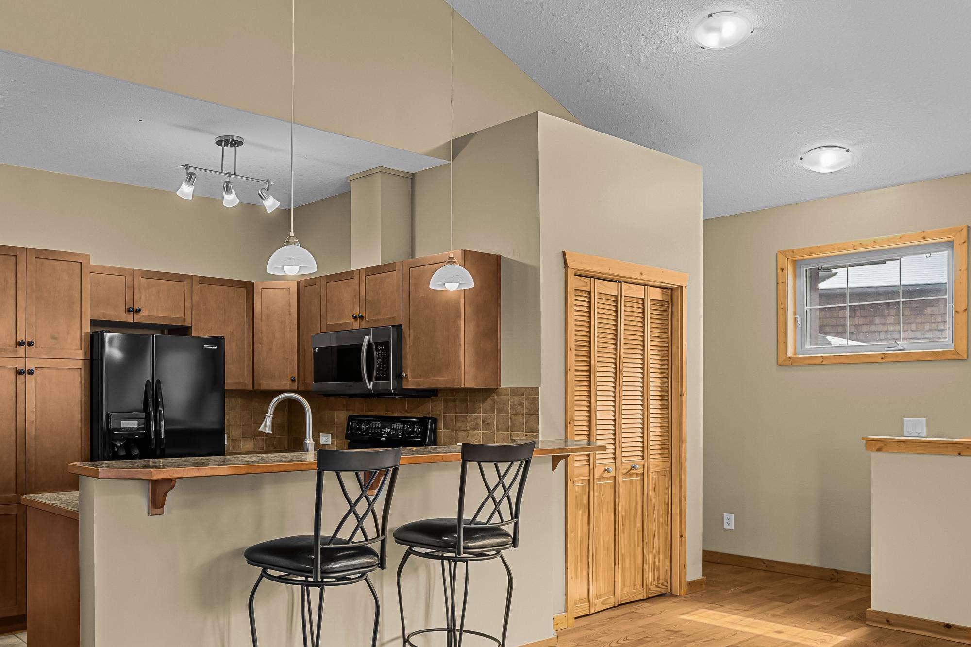 Welcome to this 3 bedroom, 2 bathroom townhome in Three Sisters Mountain Village, offering the ease of single-level living with all bedrooms and main living spaces on one floor. From the entry featuring access to the single car garage you’ll head upstairs to a bright, open-concept layout with vaulted ceilings, large windows, and plenty of natural light. The kitchen, dining, and living areas flow seamlessly onto a private balcony with beautiful mountain views. Thoughtfully designed for comfort and functionality, this home includes three well-sized bedrooms, two full bathrooms, and additional storage for your mountain gear. Located near the future Gateway at Three Sisters, with upcoming shopping and amenities, this is an excellent opportunity for full-time living or a weekend retreat. Not zoned for short-term rentals.