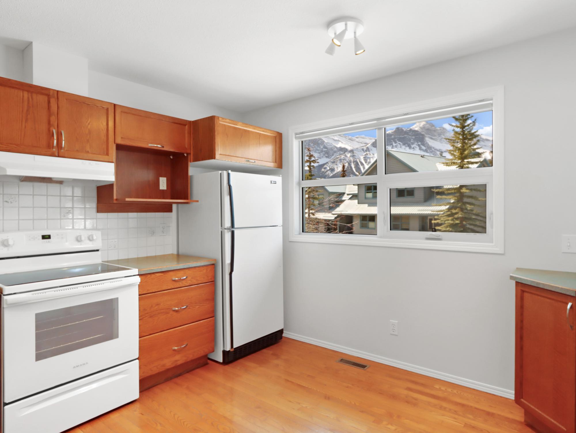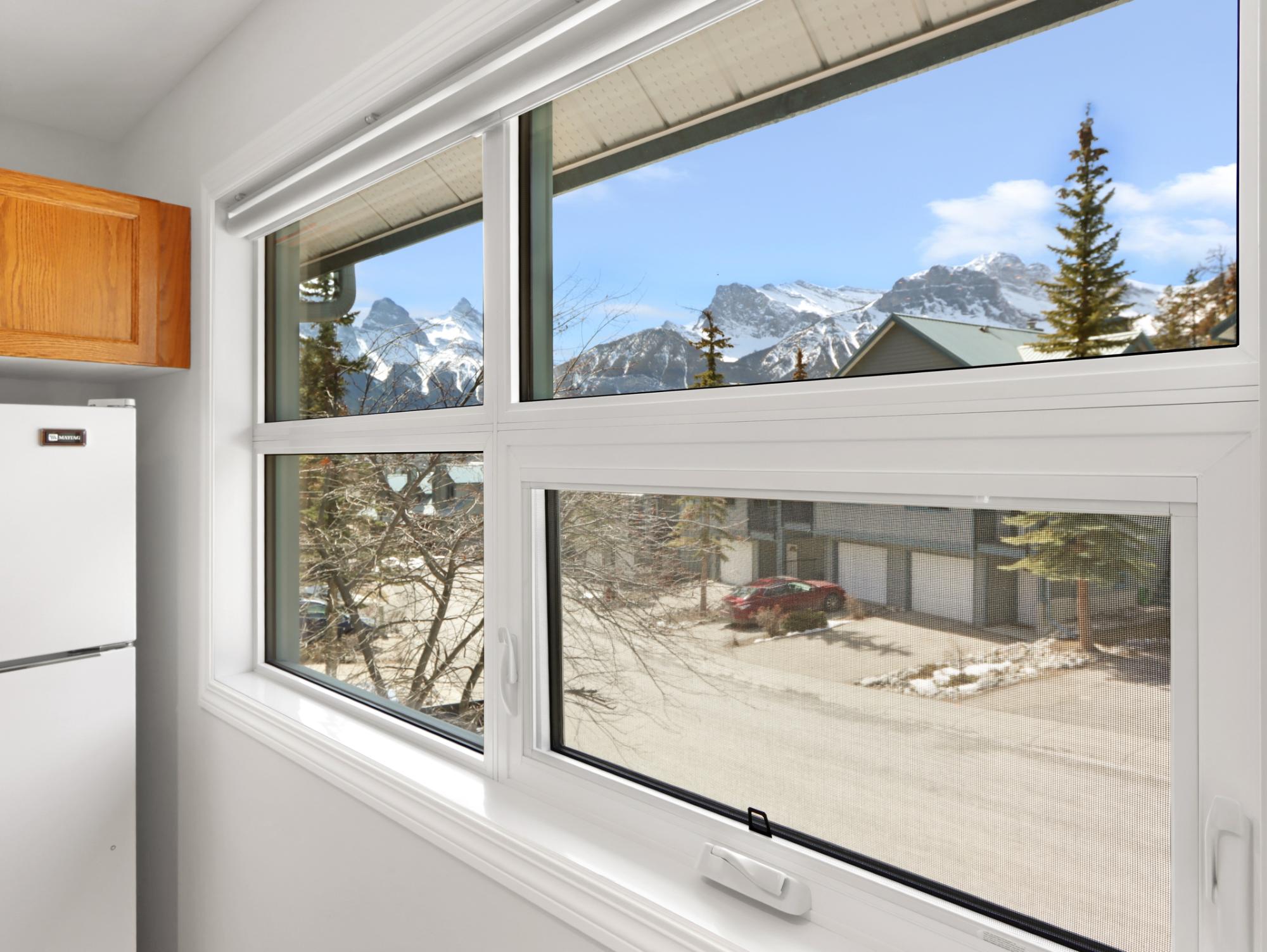 Immaculately maintained 1,574 square foot, 3-bedroom, 2.5-bath end-unit townhome in sought-after Benchlands, offering stunning mountain views, heated single garage, and two additional parking stalls. The thoughtful split-level design enhances the bright open flow and natural light throughout. The inviting living room features soaring ceilings, expansive windows, a wood-burning fireplace, and access to a large wraparound deck that enjoys a peaceful treed setting and breathtaking views, perfect for entertaining. A half level up, the spacious kitchen, which includes a huge pantry (with rough-in plumbing for a bathroom/laundry), opens to a second view deck, while the dining area overlooks the living room below. Upstairs, the primary suite offers a private ensuite and large walk-in closet. A second bedroom or ideal home office filled with striking views and natural light along with a bath/laundry completes this floor. The lower level includes a third bedroom with a 3 piece ensuite.