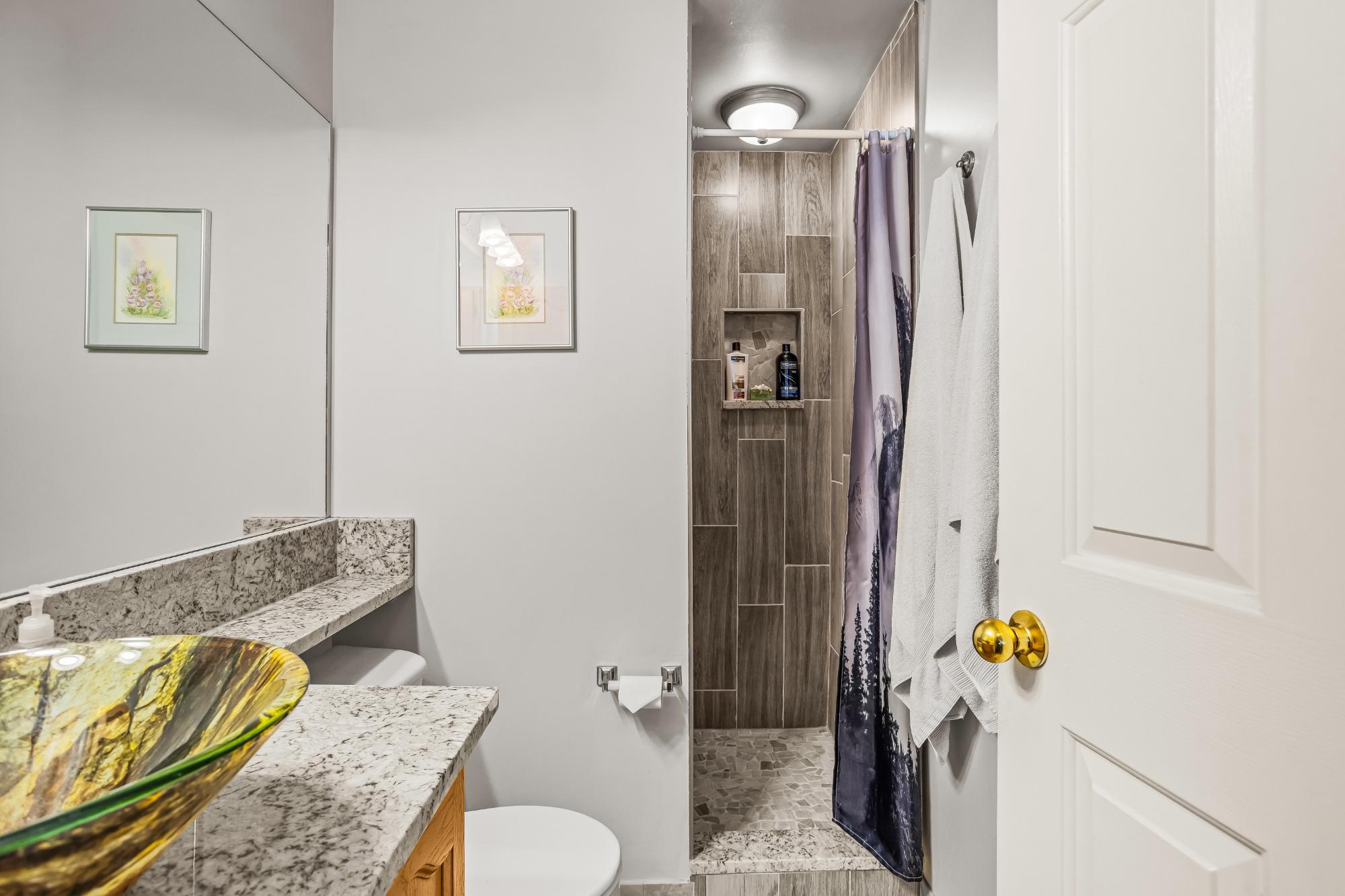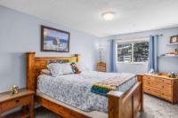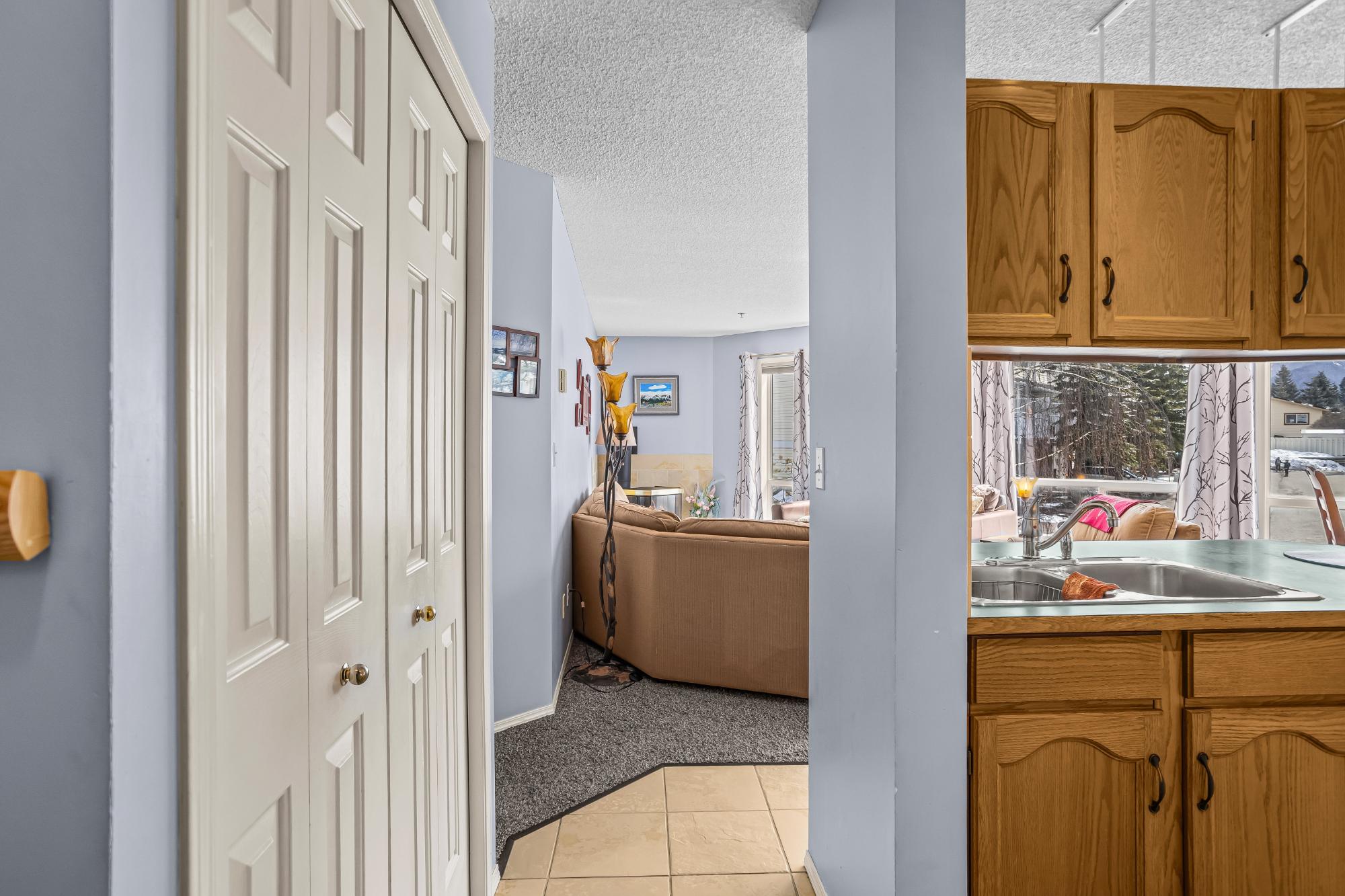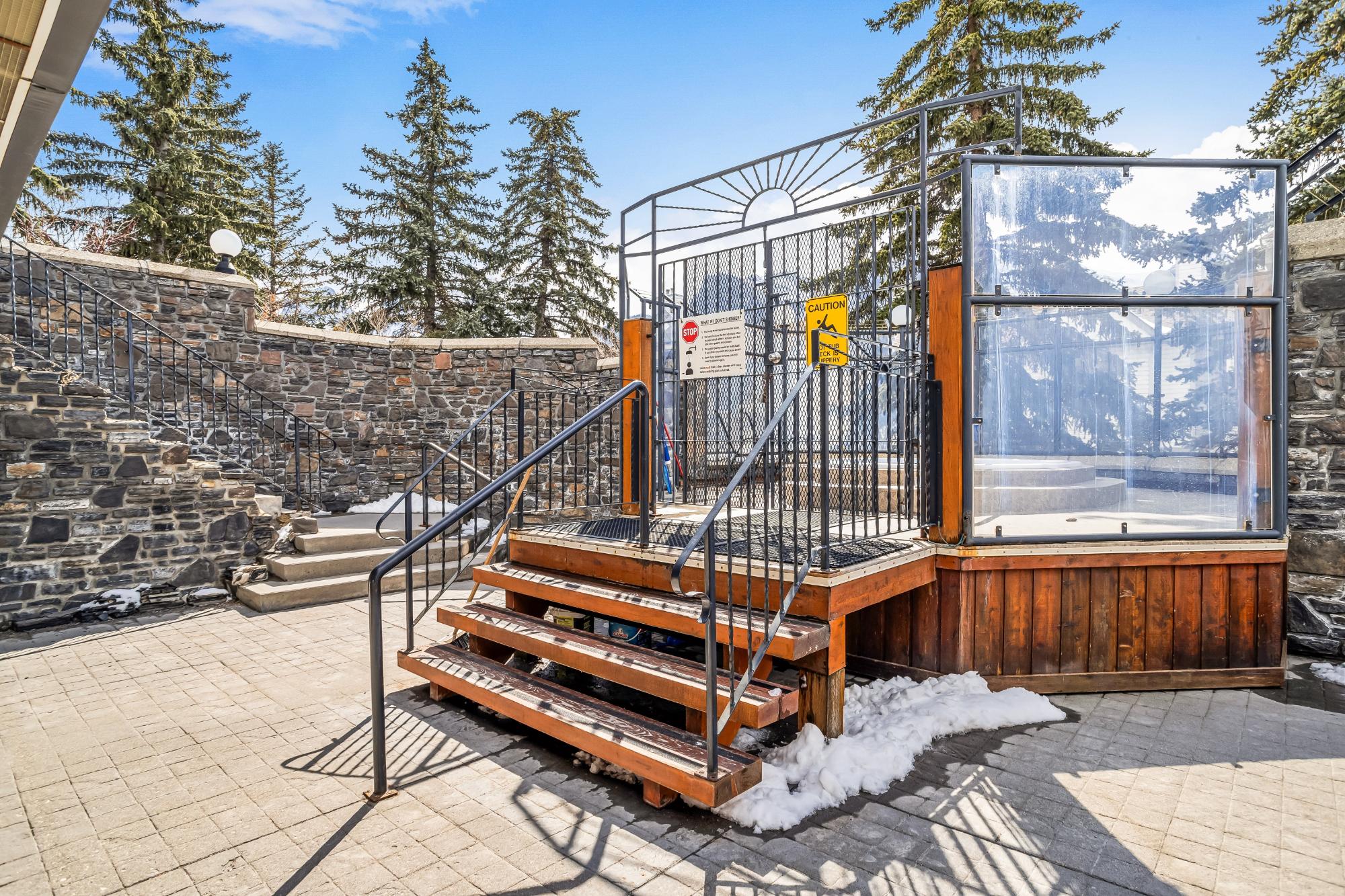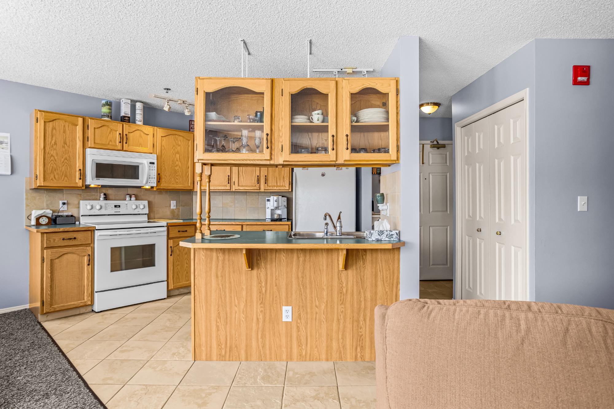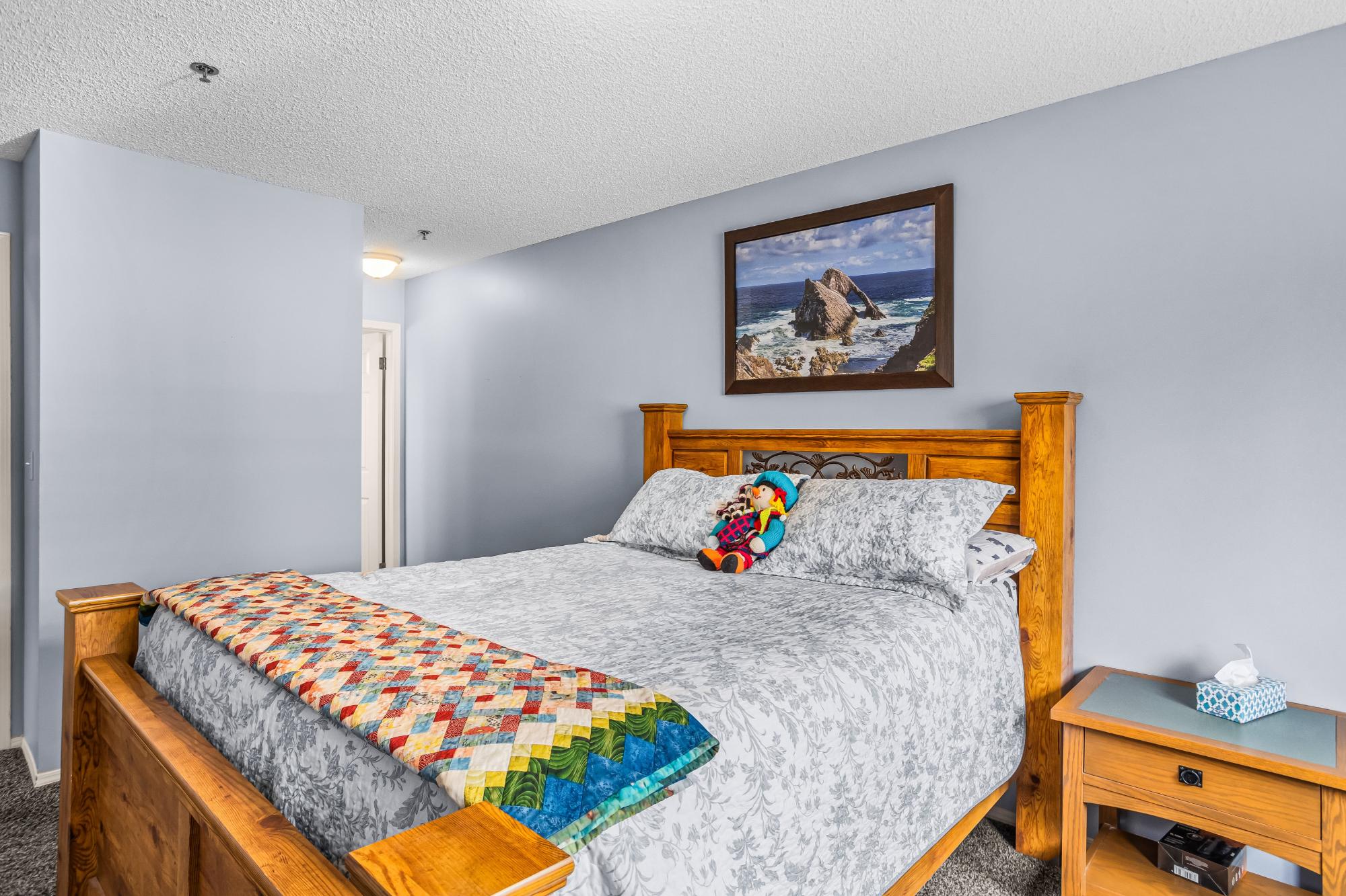 Step into this well-maintained two-bedroom, two-bathroom condo in Cougar Creek, offering a bright and functional open-concept layout. The entry and kitchen feature ceramic tile flooring that flows seamlessly into the living and dining areas. The west-facing living room captures afternoon and evening sun, highlighted by a corner gas fireplace and access to a spacious view deck with stunning mountain vistas. The generous primary bedroom includes a three-piece ensuite, while the second bedroom is thoughtfully positioned across from the updated four-piece main bathroom, alongside in-suite laundry and storage. Both bathrooms have been tastefully updated. This home also includes one heated underground parking stall and a storage locker. Located in a quiet complex with an amenities games room and out door hot tub, this property is well suited for full-time living or a mountain retreat.