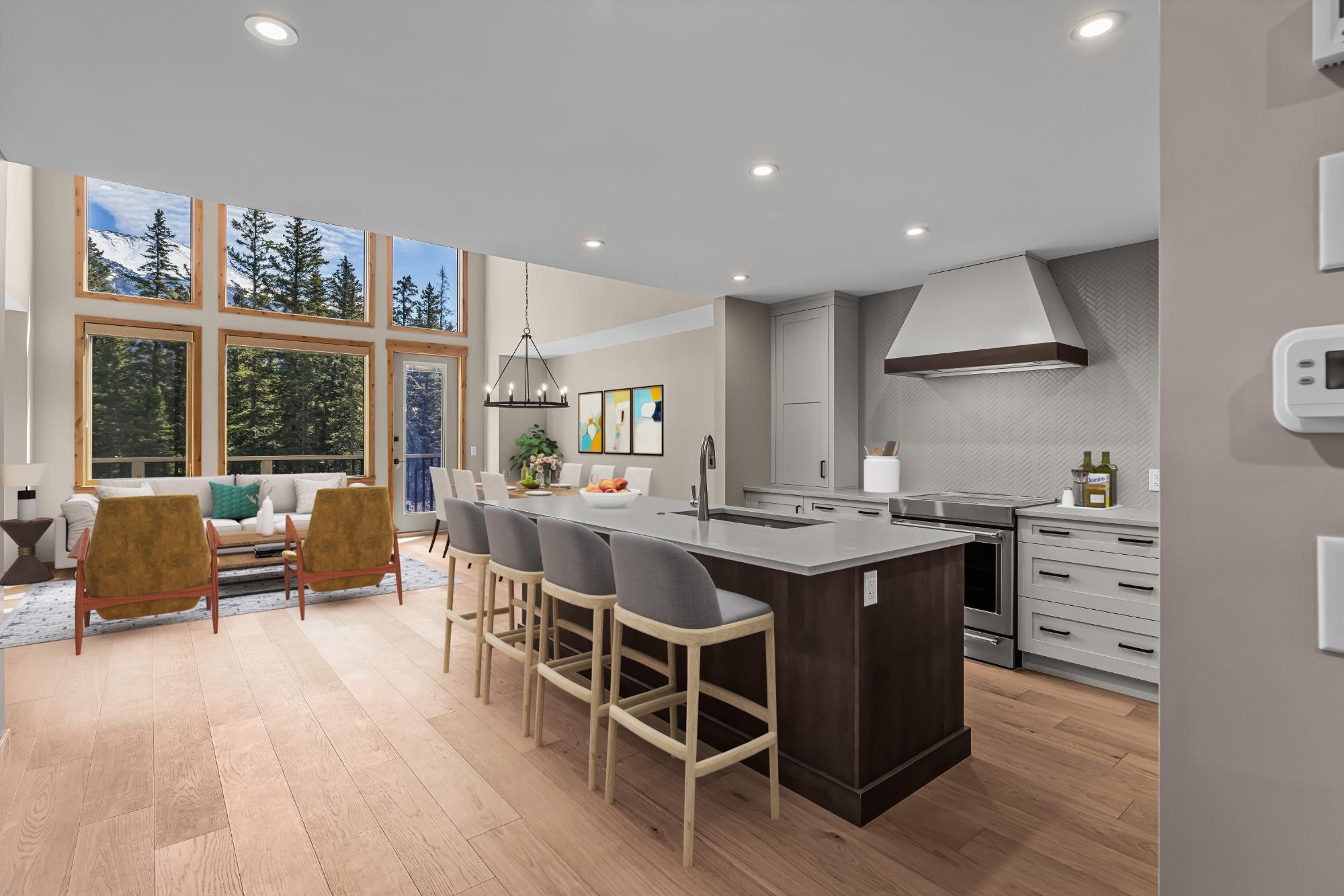 Brand new & built for exceptional short-term rental appeal, this tourist-zoned 4-bedroom townhome in Spring Creek Mountain Village is a rare Canmore investment opportunity. With phenomenal revenue potential, a single-car garage, fabulous mountain views & a private setting backing onto Policeman’s Creek, this property offers an outstanding blend of lifestyle, luxury, & income-generating appeal. The open-concept main level is warm and inviting, featuring vaulted wood ceilings, expansive windows, & a beautifully finished kitchen with quartz countertops, solid wood cabinetry, and KitchenAid stainless steel appliances, including an induction stove. Designed to appeal to both owners & guests, the layout offers generous gathering space, 4 bedrooms & a top-floor primary retreat complete with a luxurious ensuite, walk-in closet & valuable lock-off storage. Nightly rentable 4-bed properties in Spring Creek are exceptionally rare, especially in brand new condition and in this prime location.